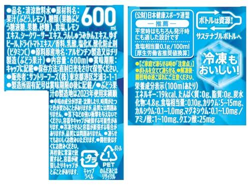 果汁(ぶどう、レモン)、糖類(果糖ぶどう糖液糖、果糖、砂糖)、食塩、レモンエキス、シークワーサーエキス、うんしゅうみかんエキス、ゆずピール、ドライトマトエキス/香料、乳酸、塩化K、酸化防止剤(ビタミンC)