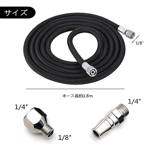 YFFSFDC エアブラシホース 1.8M ナイロン編組 エアブラシ用 エアーホース エアポンプ接続ホース エアブラシホース ブレードホース 1/8 1/4 接続用 フィッティング ジョイント付き
