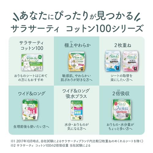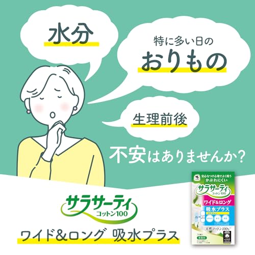 サラサーティ コットン100 ワイド&ロング 吸水プラス ちょっとだけ大きい 安心サイズ 無香料 おりものシート 34個入 小林製薬