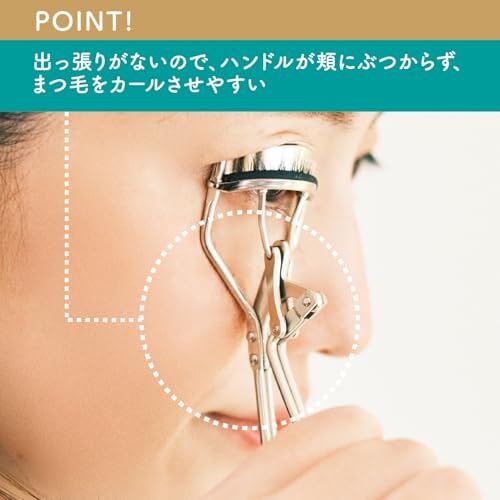 【頬を邪魔しない独自設計のアイラッシュカーラー】 でっぱりのないハンドルが頬にぶつからず力を入れやすい