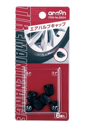 エーモン(amon) エアバルブキャップ 樹脂製(黒) 6個入 交換・スペア バルブコアの汚れ防止に 8824