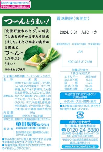 亀田製菓 亀田の柿の種ピーナッツなし わさび 91g×12袋