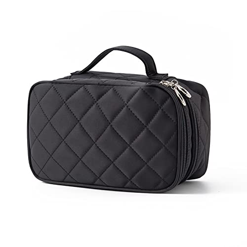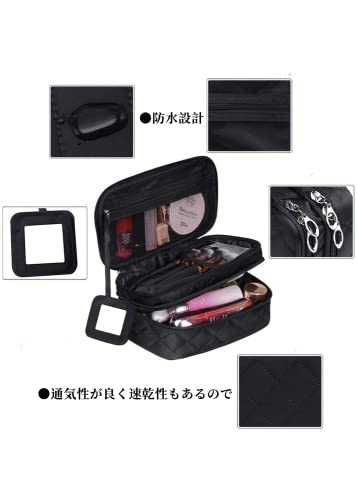 【収納力抜群の化粧ポーチ】二つの大きなポケットに分かれているダブルジッパータイプのメイクポーチ。化粧水、アクセサリー、メイクブラシホルダー、口紅、香水、ネイル用品などの小物収納にも便利です。旅行時や出張時などに充電ケーブルやアダプタ、マウスなどをまとめて収納できます。