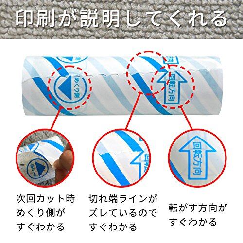 めくり口がわかりやすい【めくり側お知らせ矢印】と【切れ端まるわかりライン】が印刷されています。転がす方向がわかりやすい【回転方向矢印マーク】付きです。