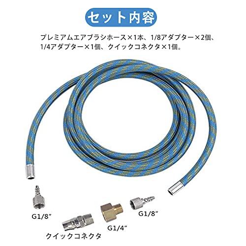 【セット内容】プレミアムエアブラシホース×1本。1/8アダプター×1個。1/4アダプター×1個。3点セット。