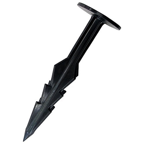 【特徴】・ギザギザな形状をした防草シート押さえ杭</br>先端トンガリで防草シートを貫通し、四方トゲで地面をしっかりつかみ刺しやすく、抜けにくい</br>打ち込み部分がフラットで、しっかり打ち込むことができます。