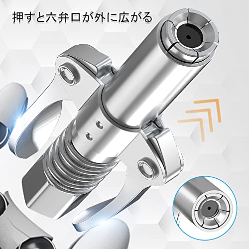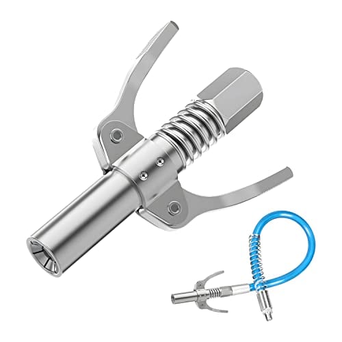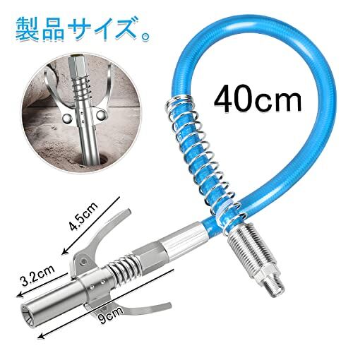 【新型グリースカプラー】このグリースカプラーは、ジョーとシールを改善された設計でプッシュ操作を採用し、軸方向の曲がりを回避します。長期の使用と安定した性能を確保し、10000PSIの極圧でも漏れを防ぎます。グリースガン、10000 PSI 高圧グリースグリースカプラー、開閉が簡単、あらゆるタイプのグリースガンに適しています。 40cmのホースが付属しています。