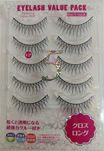 ムラキ ビューティーネイラー つけまつげ (5ペア入り) アイラッシュ バリューパック クロスロング VP-5 まつげ用強力接着剤2本入 5ペア (x 1)