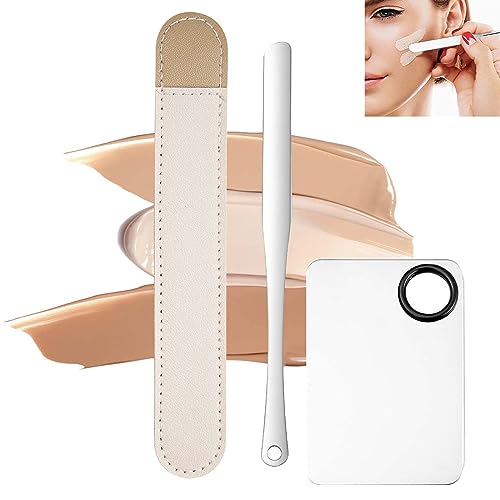 スパチュラ メイク 【3個セット】スパチュラ化粧品ツール+ステンレス・パレット 化粧品 メイク用スパチュラファンデーション、アイシャドウ、口紅を混ぜ合わせるDIYファンデーションクラフト
