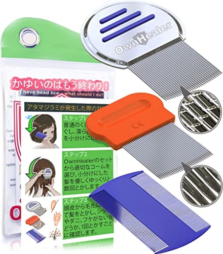 OWNHEALER シラミくしセット 3個入り シラミ 卵の検出・除去 子供から大人まで対応 含まれるもの インストラクション 収納用カバー