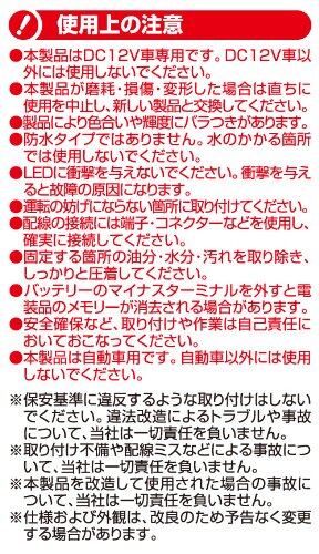発光色:青(1灯) ・DC12V車専用 ・消費電流:20mA ・コードサイズ:0.2sq相当-約200mm ・専用拡散レンズカバー付属 ・両面テープ付属