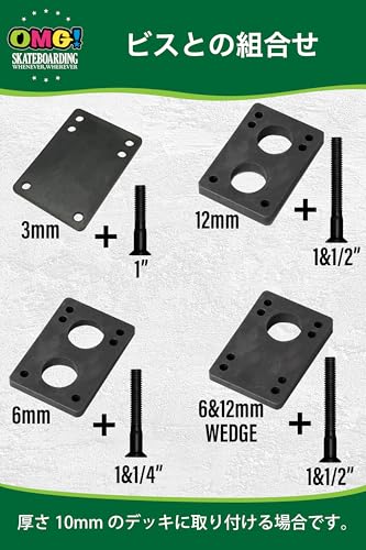✅【商品内容】スケートボードのデッキ(板)とウィール(タイヤ)との距離を出すためにデッキ(板)とトラック(金具)の間に入れるスペーサーです。ライザーパッドの厚みに応じたハードウエア(ビス)が必要になります。