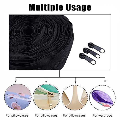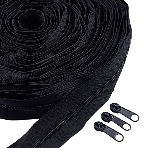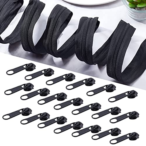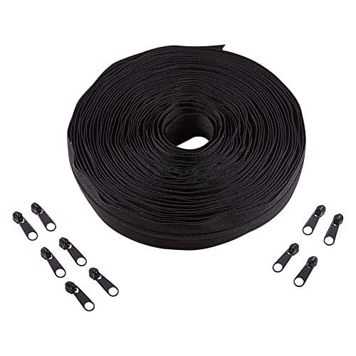 BENECREAT #3全長10mナイロンファスナーセット 黒色ファスナーテープ 20個プラスチック引き手 スライダー交換 ジッパー修理 服装 バッグ ジッパー交換 修理キット 裁縫