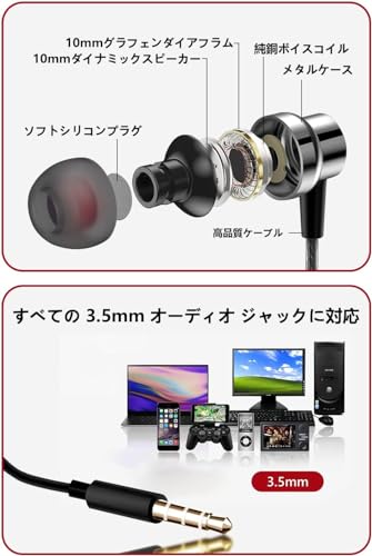 イヤホン 有線イヤホン 3.5mmジャック HIFI音質 音量調整 重低音 ノイズキャンセリング マイク付き 通話可能 ハイレゾ クリア通話 音量調節 ステレオイヤフォン ヘッドホン