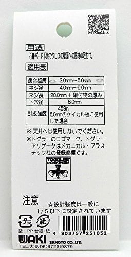 和気産業(Waki Sangyo) 中空壁用 トグラー TA 壁厚3~6mm タッピングなべ付き 石膏 アンカー GL工法 4個入 WF-105