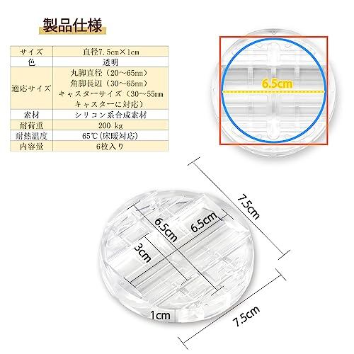 用途:キャスター 固定、畳 へこみ 防止、家具 滑り止め、床保護、椅子足傷防止、振動吸収。床暖房対応、耐熱温度65度、床暖房でも安心。