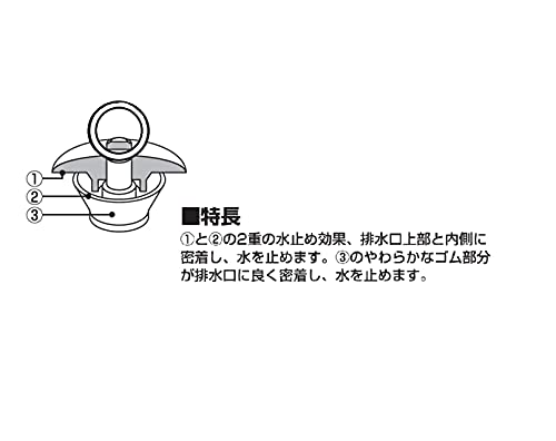【W式でしっかり水止め】ゴム栓側面と上部のフタで二重の水止め効果。排水口上部と内側に密着し、水を止めます。ゴム栓側面に柔らかなゴムを使用しており、排水口に良く密着し、水を止めます。