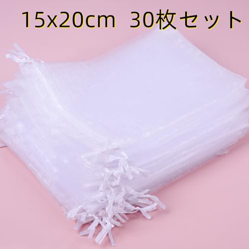 ラッピング 袋 透明 オーガンジー 巾着袋 小分け袋 プレゼント ギフト ポーチ (15x20cm 30枚)