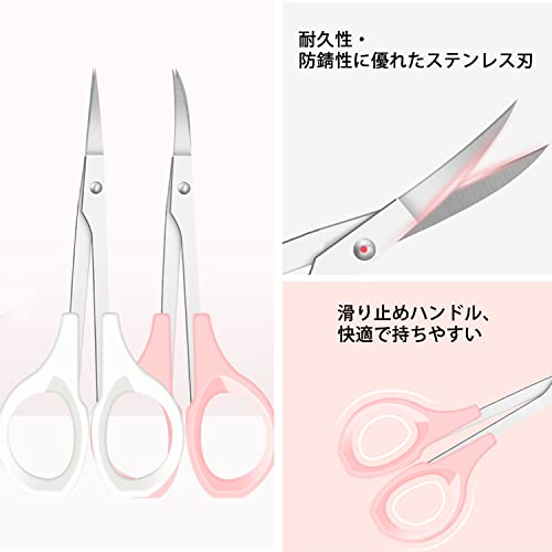 Doyime 眉用はさみ 眉毛ハサミ 眉カット (2個セット) 眉毛カッター 眉のお手入れに 整える まゆ用 眉そり 二重まぶた 化粧はさみ 甘皮ハサミ キット プレミアムステンレス製 樹脂リング付 曲ブレード 鋭い刃 錆び防ぐ 軽量 気軽 上質 オシャレ 人間工学的設計 美容 レディース メンズ 男女兼用 プロ用 ピンク+白 長さ5cm