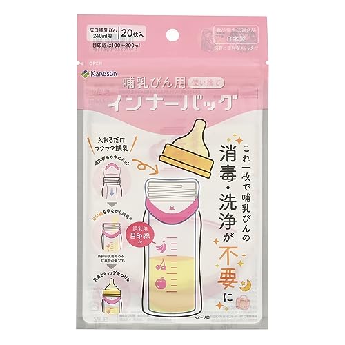 カネソン(Kaneson) 哺乳びん用インナーバッグ(20枚入)調乳用目印線つき 日本製 食品衛生法適合品 時短で衛生的 外出、夜間授乳、災害備蓄に 0か月〜 透明