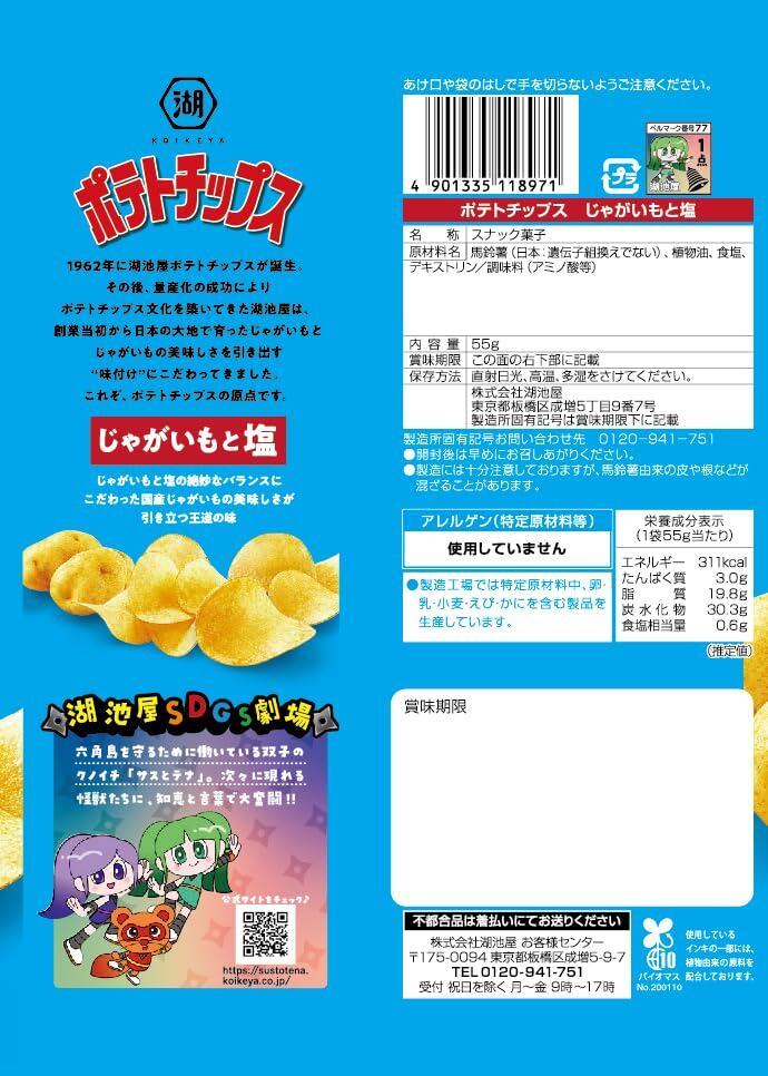 湖池屋 ポテトチップス じゃがいもと塩 55g?12袋