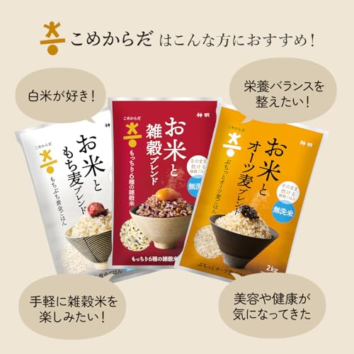 あらかじめ雑穀がブレンドされた水研ぎ不要の無洗米。白ごはん好きの方のための「こめからだ」。