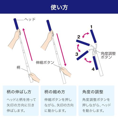 伸縮タイプなので、照明やエアコンなどの高い所や、家具・家電のスキマなどに便利です。