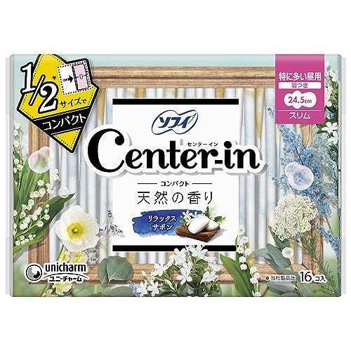 センターイン コンパクト 天然の香り 特に多い昼用 リラックスサボン 羽つき 24.5cm 16コ入(生理用品 ナプキン)