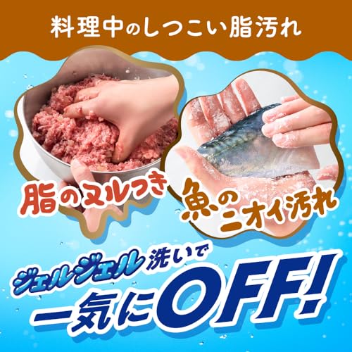 調理中のひき肉のヌルつき脂・生魚のニオイ汚れも 分解パワージェルが一気に洗い落とす。