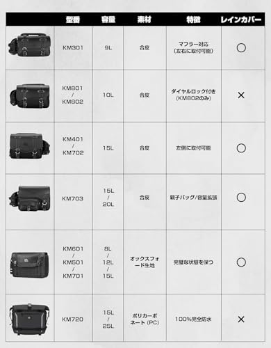 KEMIMOTO サイドバッグ 9L マフラー対応 干渉なし バイク用 サドルバッグ レブル250 汎用 バック 防撥水 ドリンクホルダー付属 金具防錆 小物収納 ブラック KM301