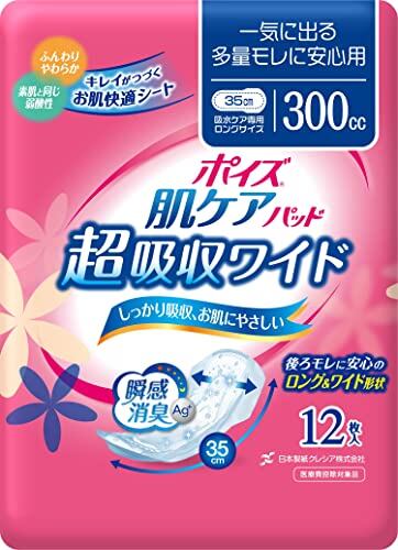 吸水ナプキン ポイズ 300cc 35cm 12枚 9個 多量モレに安心用 (女性の軽い尿もれ用) 肌ケアパッド (ケース品)