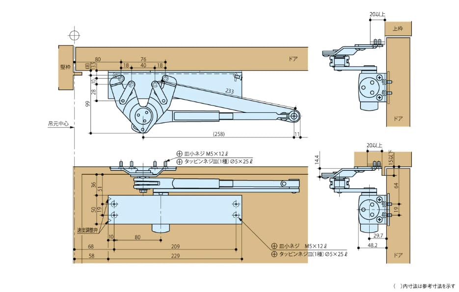 壊れたドアクローザの取付ネジ穴をそのまま使用する取替ドアクローザです。