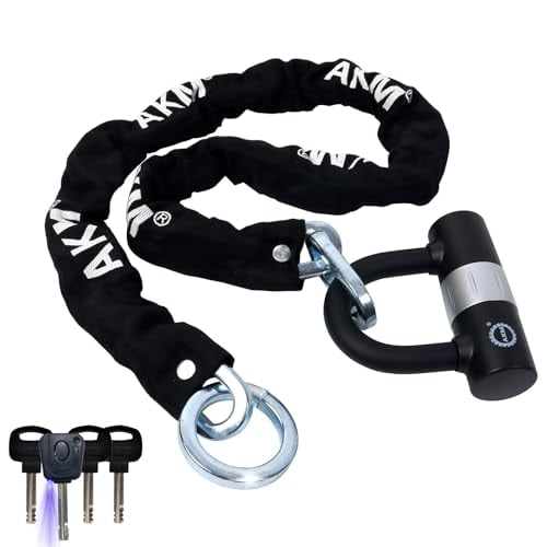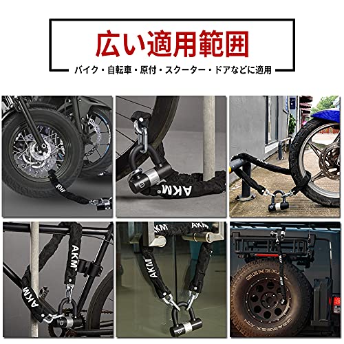 AKM バイクロック【高い耐切断性】極太チェーンロック φ(直径)10mm×1200mm U字ロック付き 自転車原付オートバイク