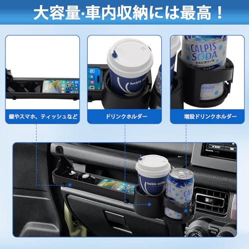 LIMSTYLE スズキ ジムニー JB64 JB74 JC74 助手席用 フロントテーブル ドリンクホルダー ジムニーシエラ ノマド 5ドア アシストグリップ 収納ホルダー NOMADE SIERRA H30.7~ 右ハンドル専用 増設収納ラック 助手席乗降グリップ 内装パーツ アクセサリー 車種専用
