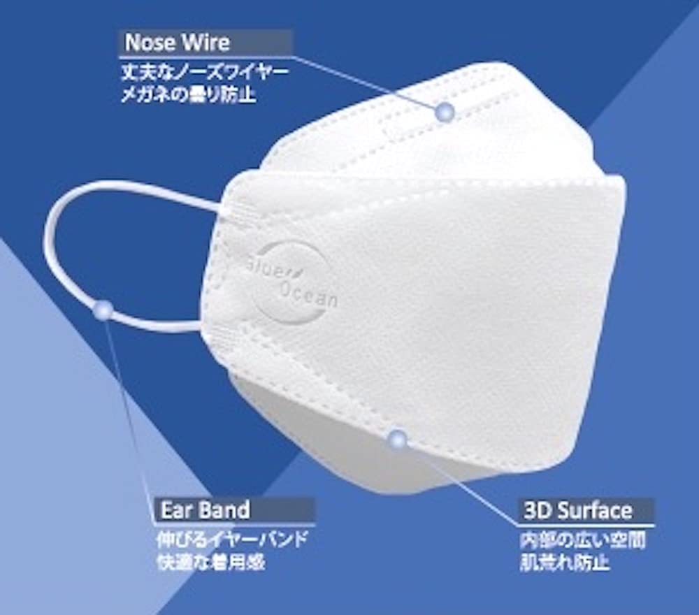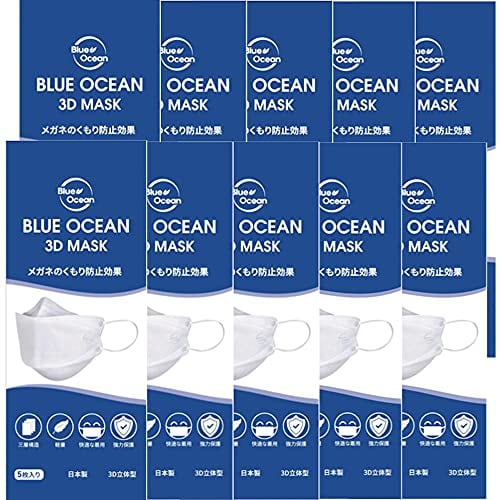 マスク 不織布 日本製 3D 立体型 BLUE OCEAN ブルーオーシャン 3D マスク BLUE ホワイト 50枚(5枚入り×10袋)