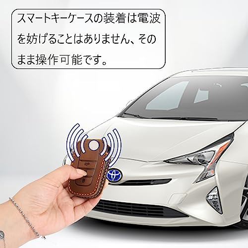 【LEXLEY 新型キーケース 登場】 トヨタ 新型プリウス 60系 専用 本革 キーケース レザー キーカバー キーホルダー スマートキーケース PRIUSロゴ付キズ防止 カスタムキーケース(ブラウン)