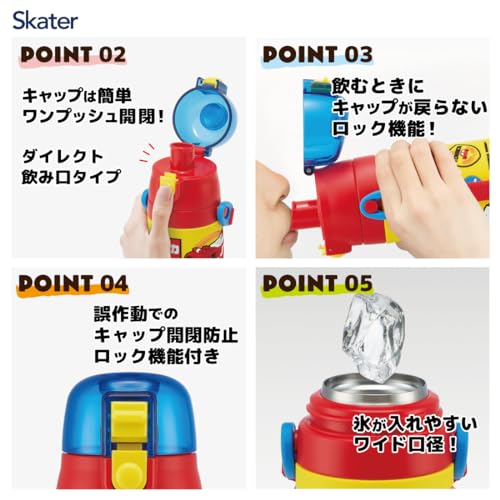 スケーター(Skater) 子供用 ステンレス 水筒 直飲み 480ml トミカ 男の子 3D立体プリント 子供に優しい軽量タイプ 保冷専用 waterbottle スポーツボトル キッズ こども 水瓶 SDPV5-A