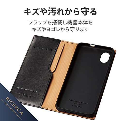 エレコム Galaxy A22 5G レザーケース 手帳型 RICERCA(Coronet) ブラック PM-G217PLFYILBK