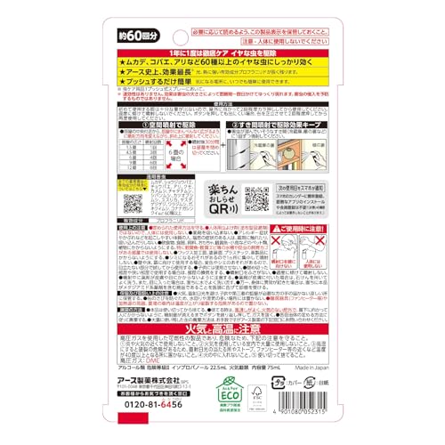 有効成分テネべナール(一般名:ブロフラニリド)配合で、すき間に予め噴射しておけば、1年間、害虫のいない空間が続きます。(使用環境、害虫の種類により持続は異なります。)