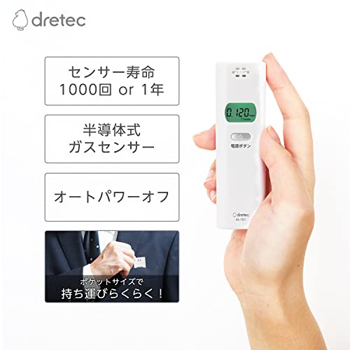 ドリテック(dretec) アルコールチェッカー ブレスチェッカー アルコール検知器 非接触型 業務用 乾電池 飲酒運転防止 ホワイト(AL-101)