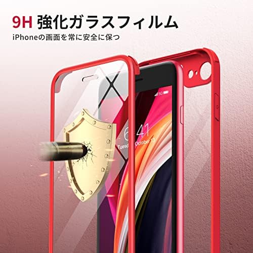 Miracase iPhone SE 用 ケース SE3 SE2 iPhone 8用スマホケース 第2世代 第3世代 4.7インチ 9H強化両面ガラス フルカバー ワイヤレス充電対応 (レッド)