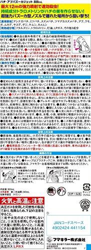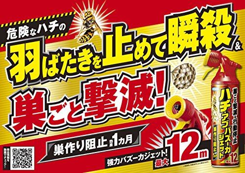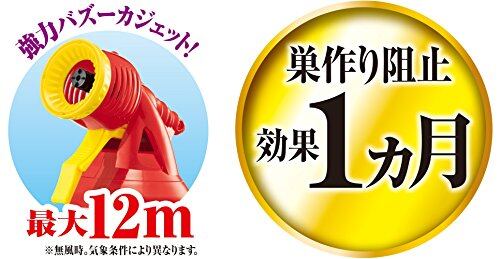 適用害虫:アブ、ムカデ、ケムシ、クモ、カメムシ、アシナガバチ、ミツバチ、スズメバチ、ツマアカスズメバチ、ガ、ゲジ、ヤスデ