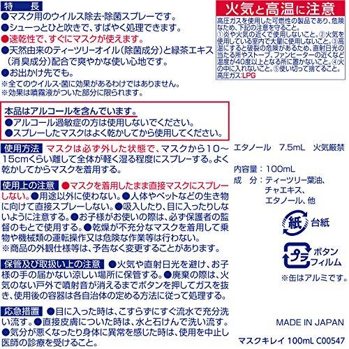 バルサンプラス マスク用 ウイルス除去・除菌スプレー マスクキレイ 100ml (消臭成分配合・秒速乾燥)