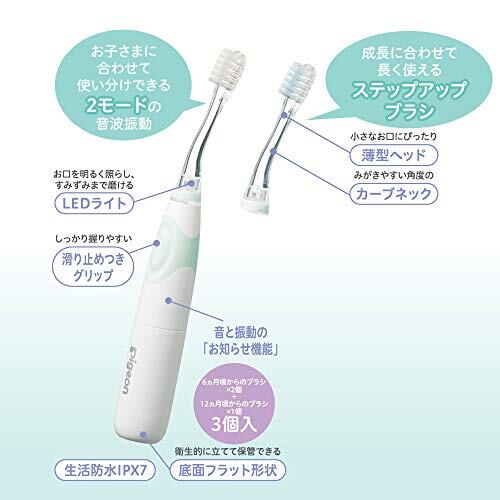 セット内容:電動歯ブラシ本体 1個・ブラシ(6ヵ月頃から) 2個・ブラシ(12ヵ月頃から) 1個