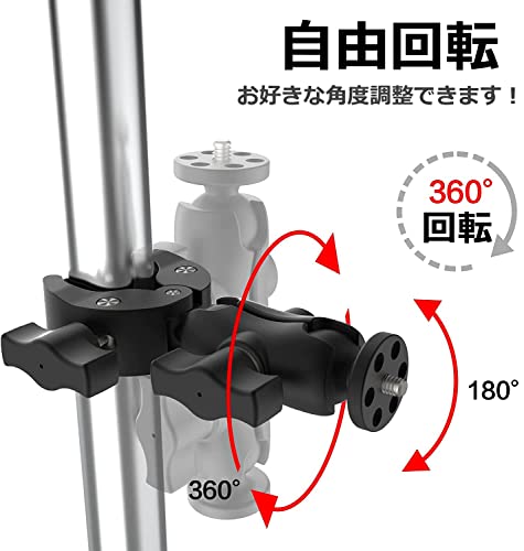 【Taisioner】スーパークランプ 360°回転 角度調整 自転車・バイク・Gopro用マウント ウェアラブルカメラカメラ固定用 1/4”ネジ対応可能 2点位置 液晶モニター/アクションカメラ/ミラーレス/デジタルカメラ/ビデオカメに対応 (クリップマウント)