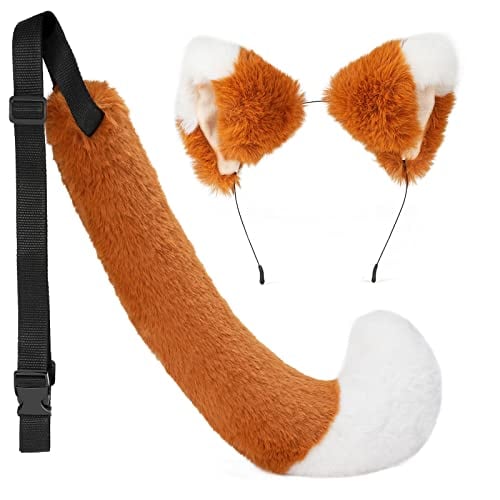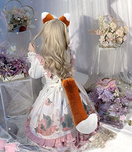 【2点セット】セット内容:きつね耳カチューシャ×1、きつねしっぽ×1。しっぽの長さは約60cm誰でも使用できます。