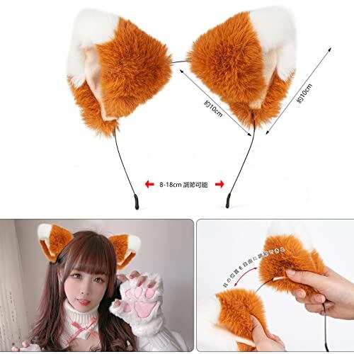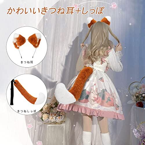 mefeny きつね耳 カチューシャ しっぽ きつね ダンス 耳 しっぽ 2点セット 狐耳 コスプレ ふわふわ きつね 仮装 コスチューム