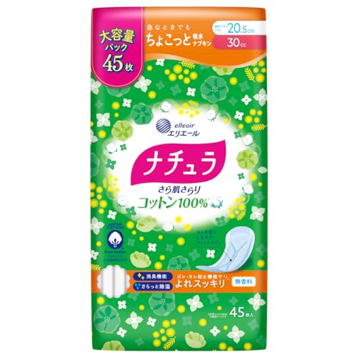 ナチュラ さら肌さらり コットン100% よれスッキリ 吸水ナプキン 30cc 20.5cm 45枚 【大容量】