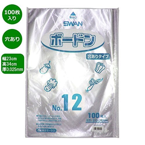 シモジマ スワン ボードン袋 野菜用 0.025mm厚 №12 穴あり 100枚入 006763212