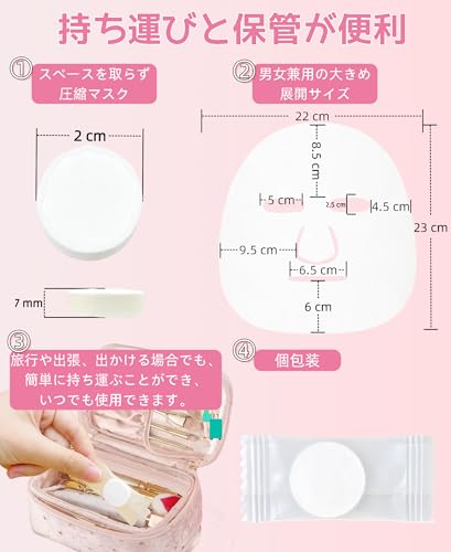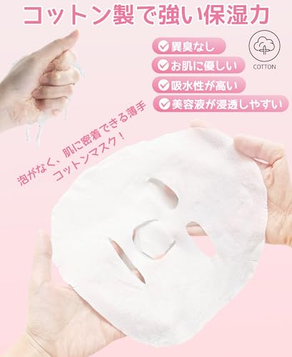 【強い保湿力】圧縮シートマスクには天然コットン素材を採用し、吸水性が高いです。また、肌に優しく、敏感肌の方でも安心してお使いいただけます。顔につけたら気泡がなく、肌に密着でき、美容液が浸透しやすいです。